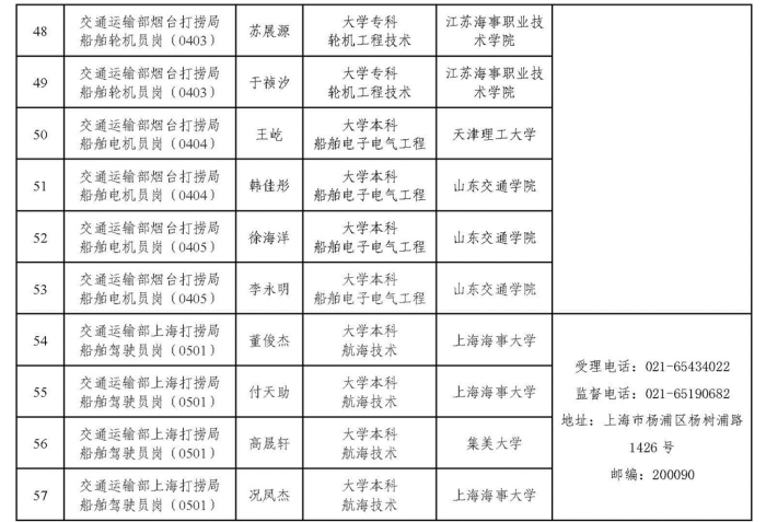 根據事業單位公開招聘工作有關規定,現將交通運輸部所屬事業單位2026年度第一批統一公開招聘部分單位擬聘用人員予以公示。公示期間,如有問題,請向用人單位反映,或直接通過中央和國家機關所屬事業單位公開招聘服務平臺反映。