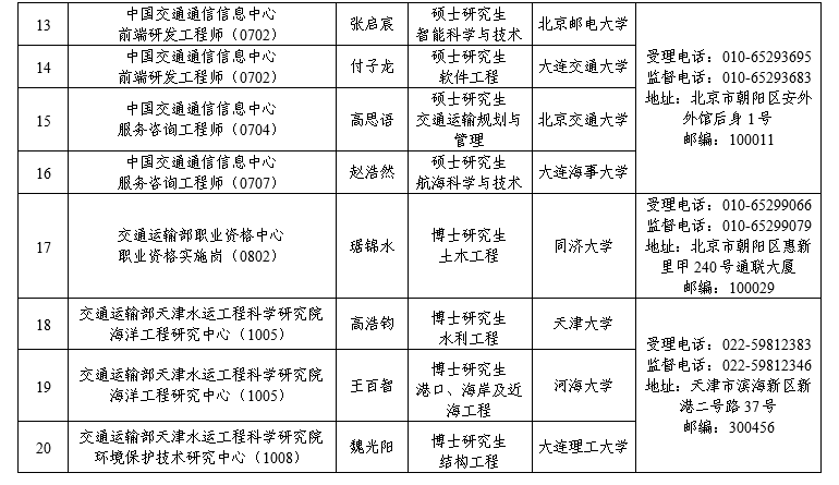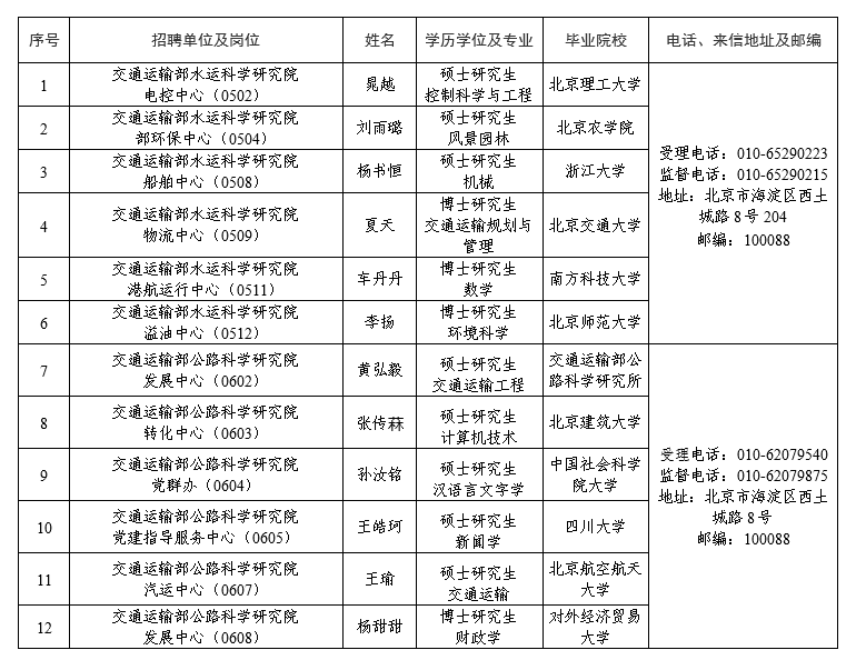根據事業單位公開招聘工作有關規定,現將交通運輸部所屬事業單位2026年度第三批統一公開招聘部分單位擬聘用人員予以公示。公示期間,如有問題,請向用人單位反映,或直接通過中央和國家機關所屬事業單位公開招聘服務平臺反映。