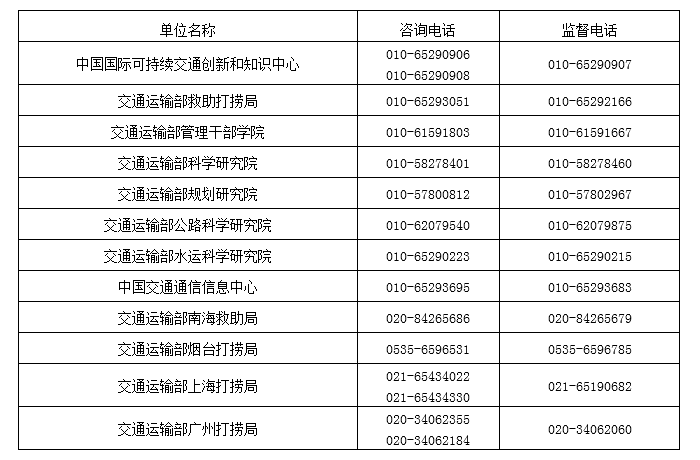 (四)交通運輸部所屬事業單位2026年度第六批統一公開招聘工作各招聘單位報名聯繫電話: