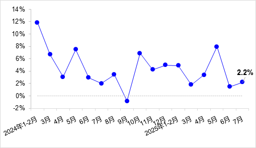 7月,完成營業性貨運量49.7億噸,同比增長3.4%,增速較上月回升0.5個百分點。其中,完成公路貨運量37.0億噸,同比增長3.3%;完成水路貨運量8.2億噸,同比增長3.4%。