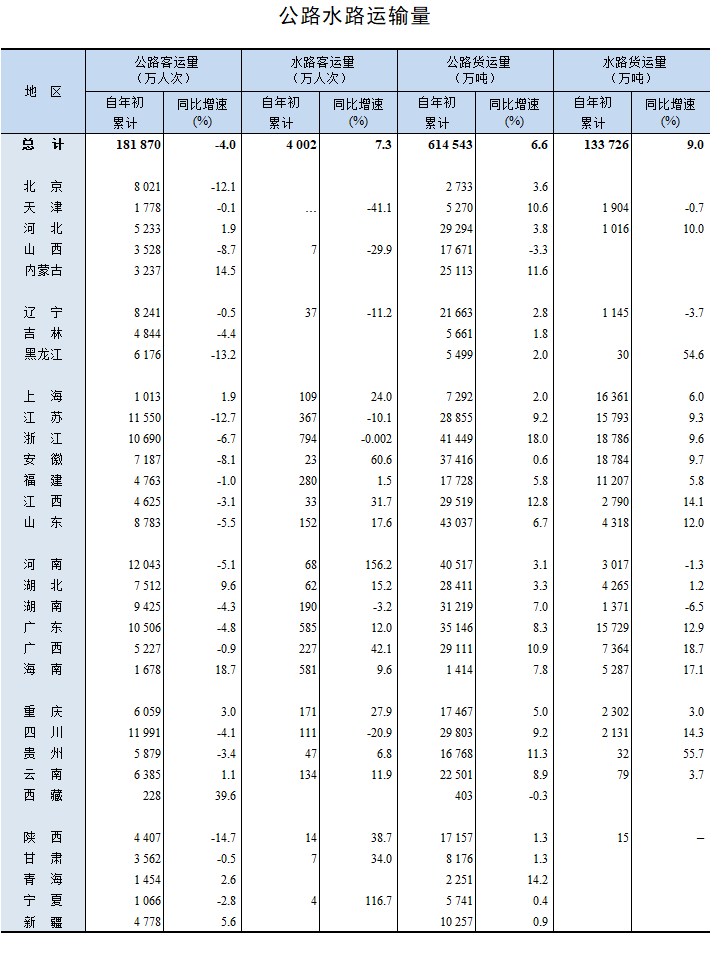 公路水路;運輸量
