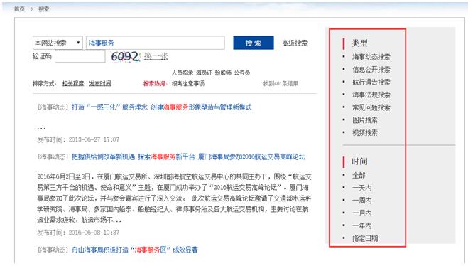 圖1:中華人民共和國海事局門戶網站檢索頁面展示